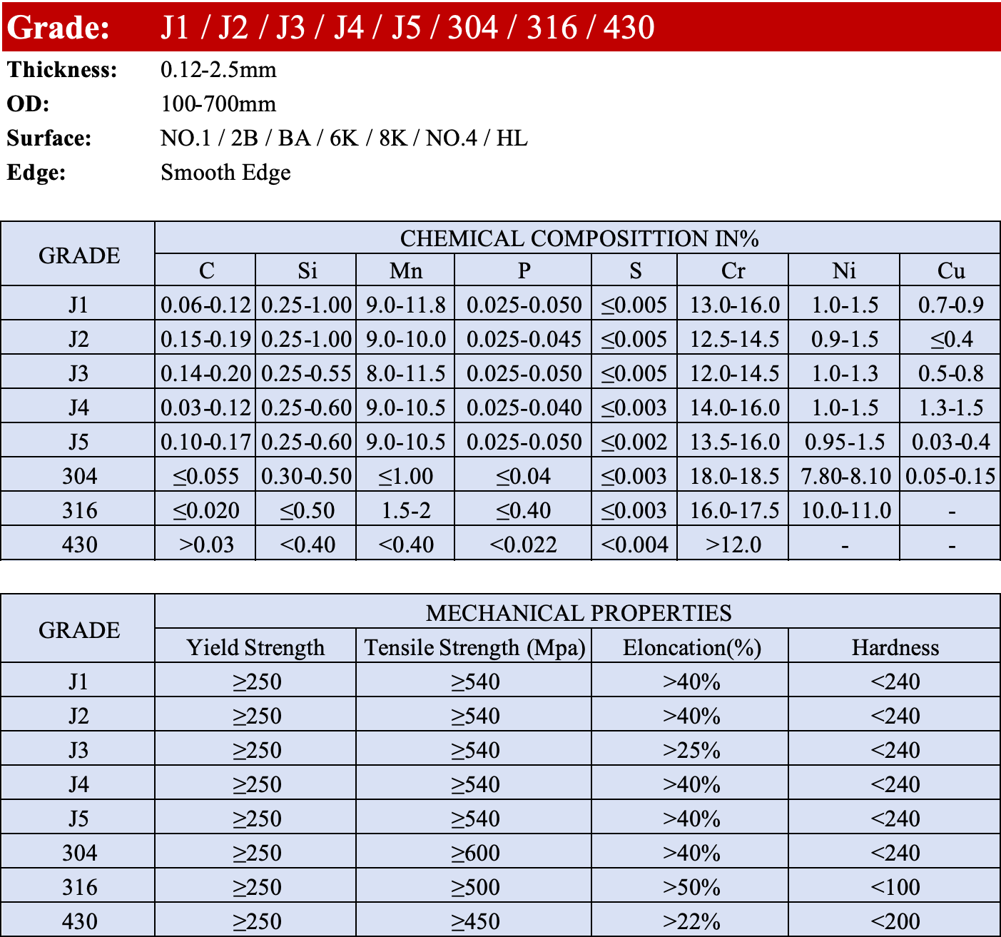 201/ 202/ 304/ 316/ 409/ 410/ 430 and so on